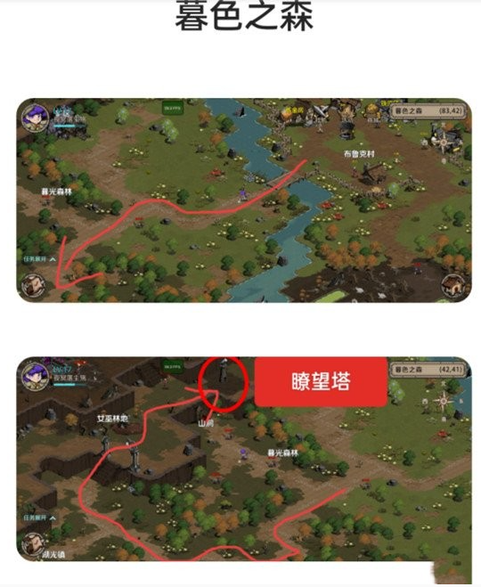 1、玩家首先从黑暗沼泽位置向前走,顺着小路前行即可找到瞭望塔。