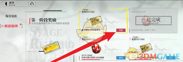 答:任务-新启指南,点击已经解锁的任务奖励进行领取即可。