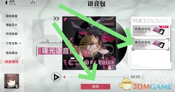 3、接着在语音包页面,找到中文的语音包,点击使用后即可完成切换;