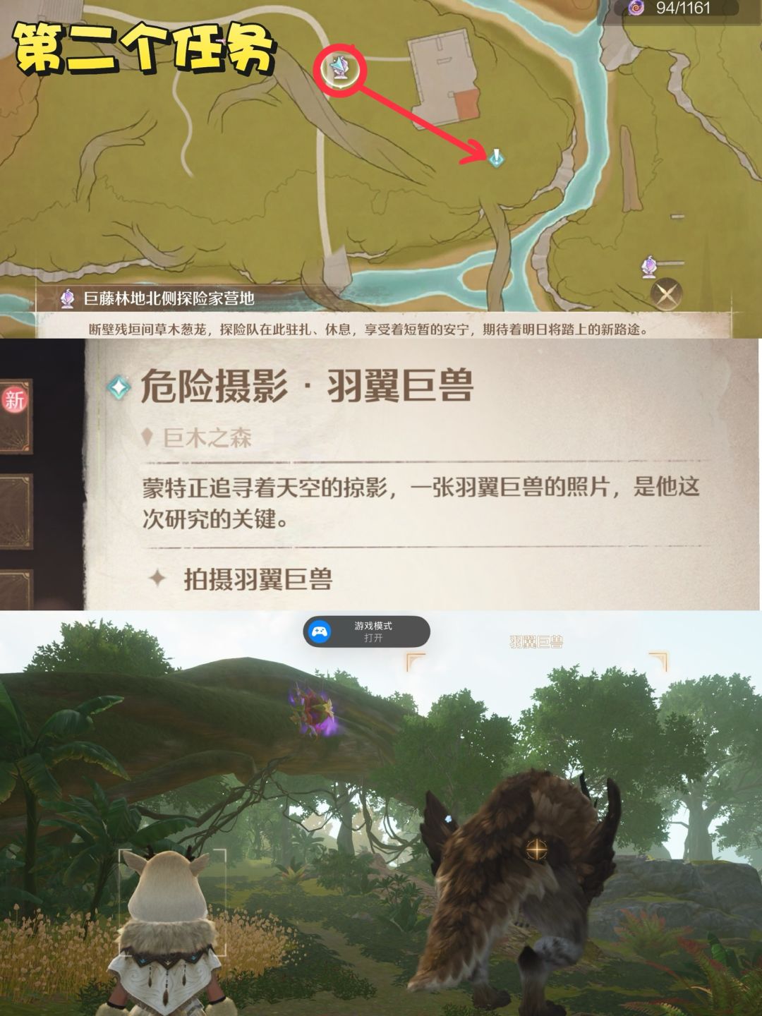 找到戴面具的蒙特接取任务“危险摄影•羽翼巨兽”