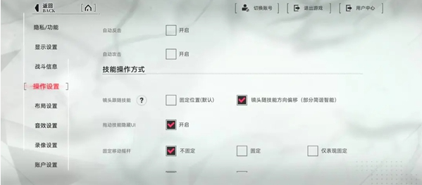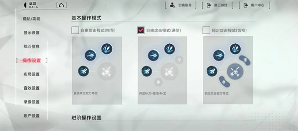 3、操作设置:基本操作模式用自由攻击模式进阶。