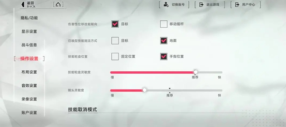 7、技能轮盘灵敏度:调最高,但越高对操作精度要求就越高,具体调多少根据自身决定。