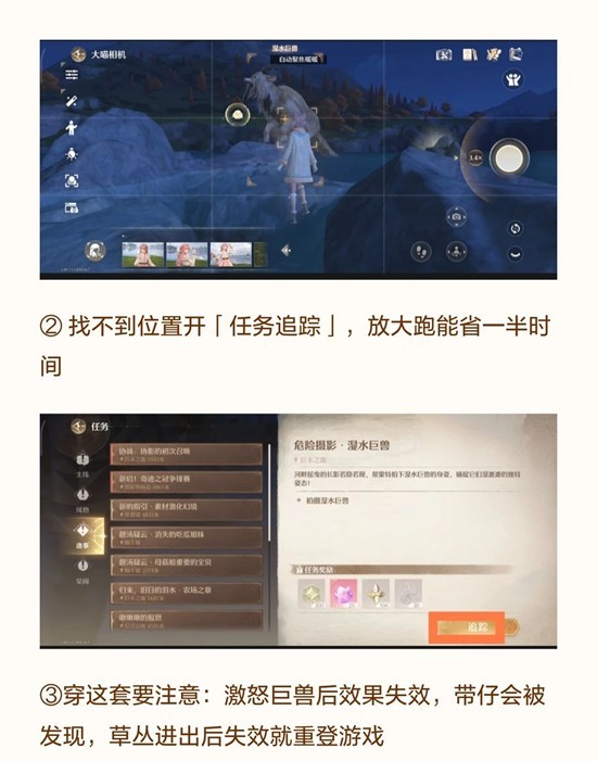 3.安眠之林:传送后朝右走接任务,目标巨兽固定不动,轻松拍完整