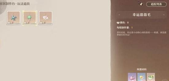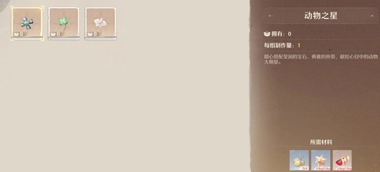 四级解锁了动物配饰设计图,如图2-4所示。制作材料会需求其他能力高等级产物:种植作物、养鱼作物都需要五级/七级,采星六级,短时间做不出来。