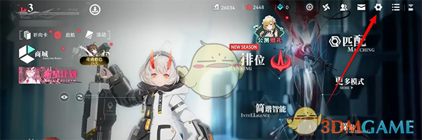 1、首先我们在游戏主页,点击右上角的设置功能前往;