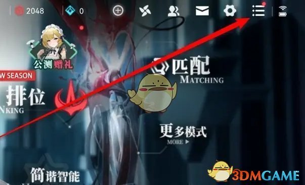 1、进入游戏主页后,点击右上角的三横线前往设置菜单栏;