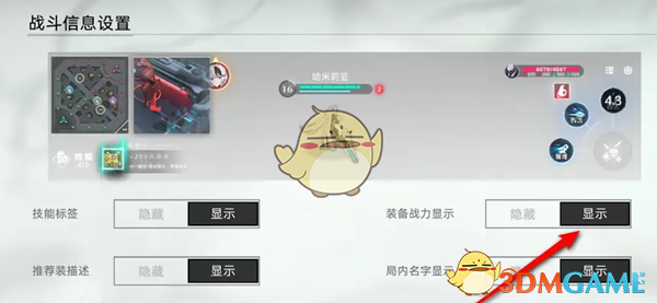 答:在设置页面找到战斗信息,选装备战力显示功能,自由设置开启或关闭即可。