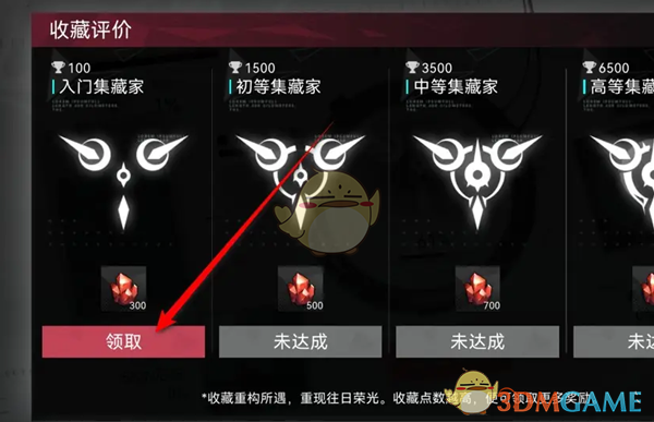 4、进入收藏评价后,点击下方的的领取即可获得收藏评价的奖励物品;