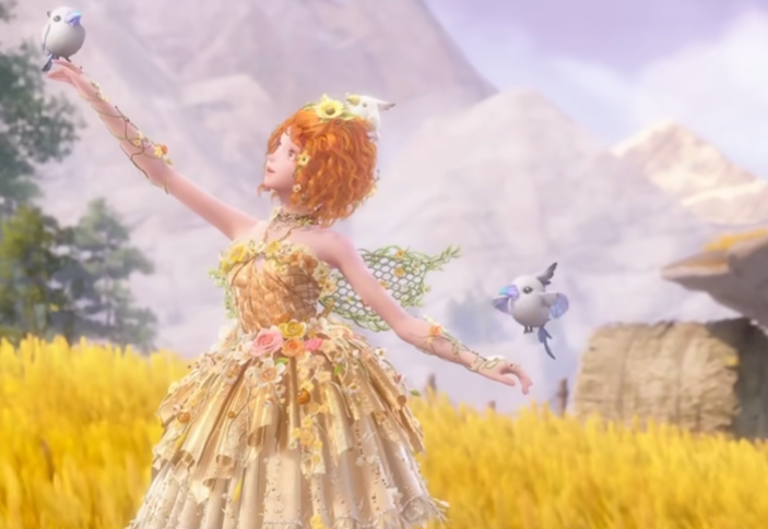 至于这次新的四星套装,从演示中可以看到有一个非常清新可爱的小翅膀,可以搭配一些田园清新风格的衣服,而且可以与小鸟互动,或许能力是召唤小鸟在周身互动,适合拍照。还可以看到先前的无人区场景也是有了较大的变化,新增了类似晚会的布景。