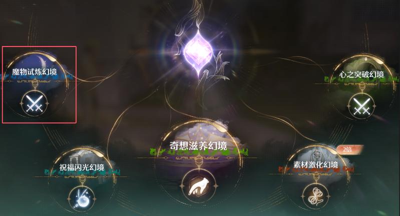 1、注意,只能进秘境里开,点击传送点——魔物试炼幻境