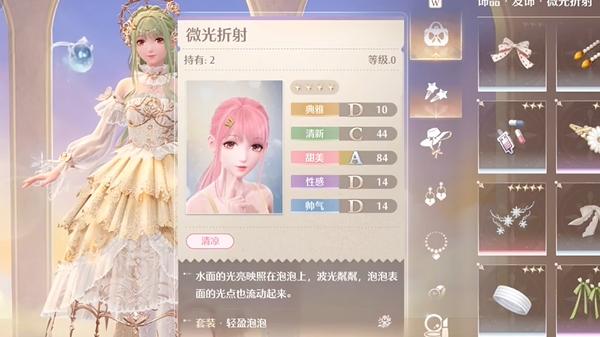 对话结束,换上漂浮套,发卡选择微光折射。