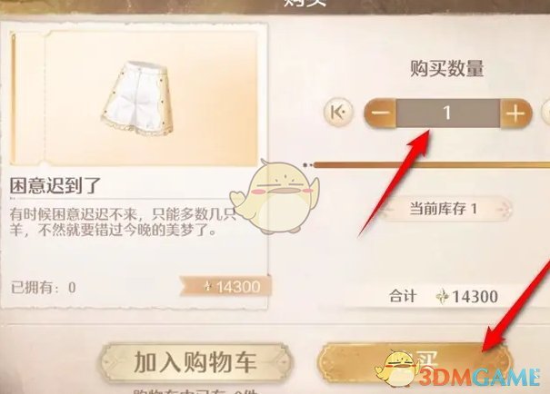 4、选择购买数量后,使用噗灵购买就可以获得困意迟到了短裤;