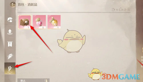 2、展开美鸭梨的菜单功能页面,点击打开背包,在背包的道具栏找到道具箱,点击使用。