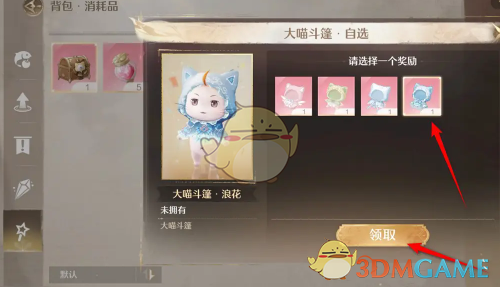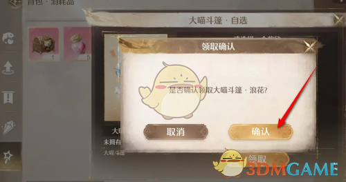 3、之后再选择需要要的道具物品,点击领取并确认即可打开道具箱并获得道具箱内的物品。