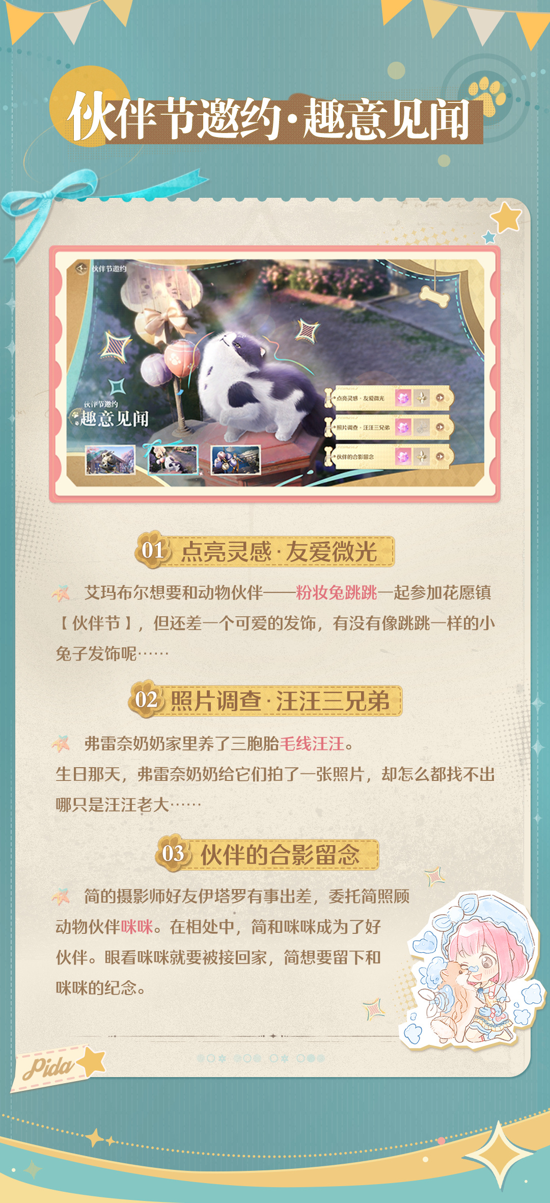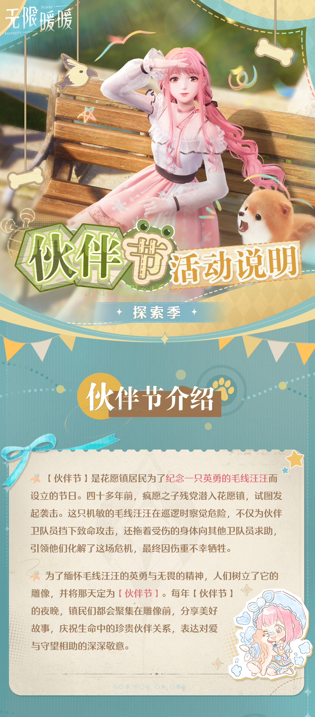 为了纪念英勇的毛线汪汪,表达对爱与守望相助的深深敬意,花愿镇的居民们特意设立了一年一度的【伙伴节】。不过今年伙伴节,似乎出现了一些突发情况……