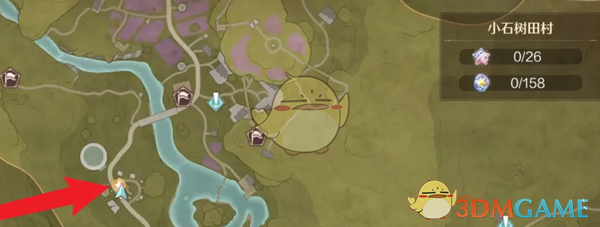 1、首先我们打开地图,传送到小石树田村这里;