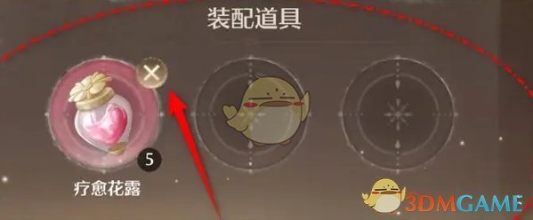 4、在装配道具页面,选择添加疗愈花露即可将其装备在快捷栏内;