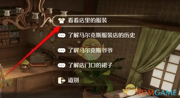 2、在对话中选择看看店里的服装;
