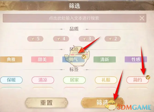 4、我们可以筛选一下帅气和简约标签服饰;