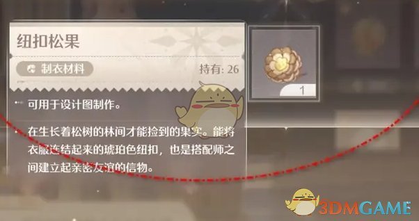 答:前往玛蒂尔德的采集植物小铺购买纽扣松果