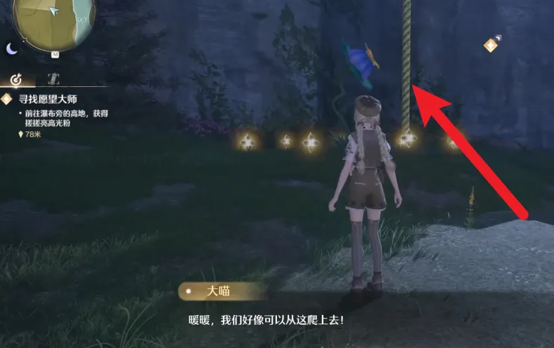 1、打开无限暖暖游戏,在任务区域爬上绳子。