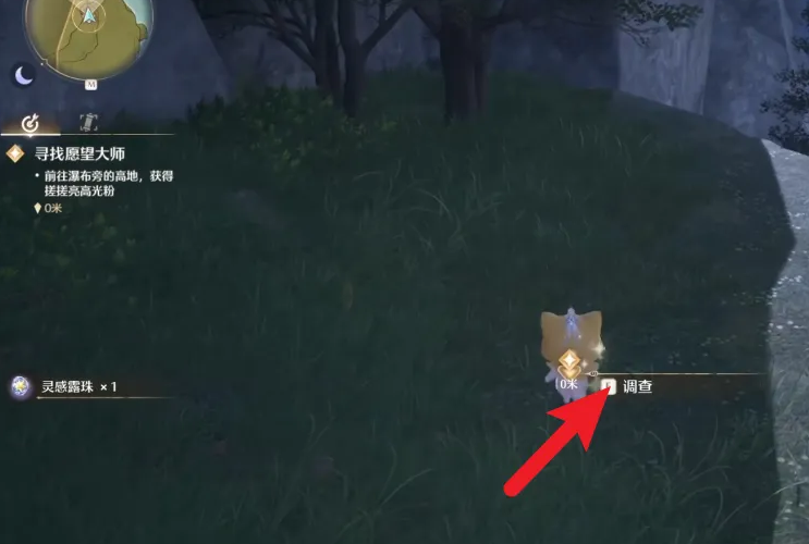 3、之后到达任务地点,使用变小套装点击调查。