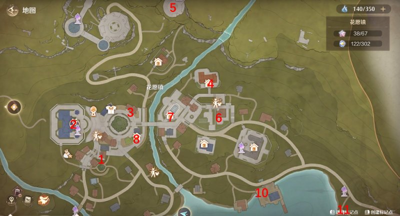 目前花愿镇的11个小游戏,以民俗手册的顺序,就在上图中的11个位置里。如果还有没解锁完的玩家都可以去解锁一下。