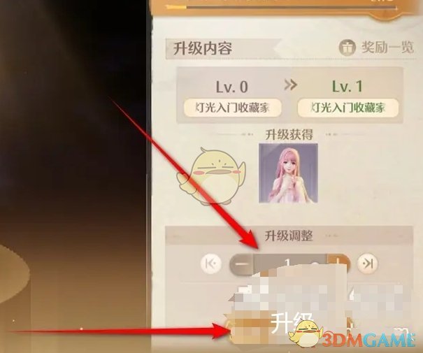 4、接着在灯光升级页面,选择升级等级后,点击下方的升级按钮;