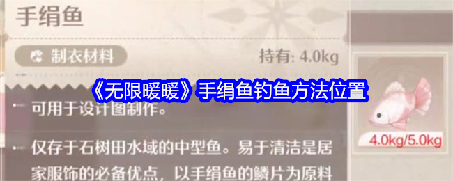 无限暖暖手绢鱼是制作梦寻星愿、角逐、纯白旋风、故乡的风、星愿璨梦、珍珠标点、心愿金蔷薇、素色天然、酸甜缀梦的制作材料,很多小伙伴想知道手绢鱼在哪钓,下面是小编给大家带来的《无限暖暖》手绢鱼钓鱼方法位置,感兴趣的小伙伴们一起来看看吧。