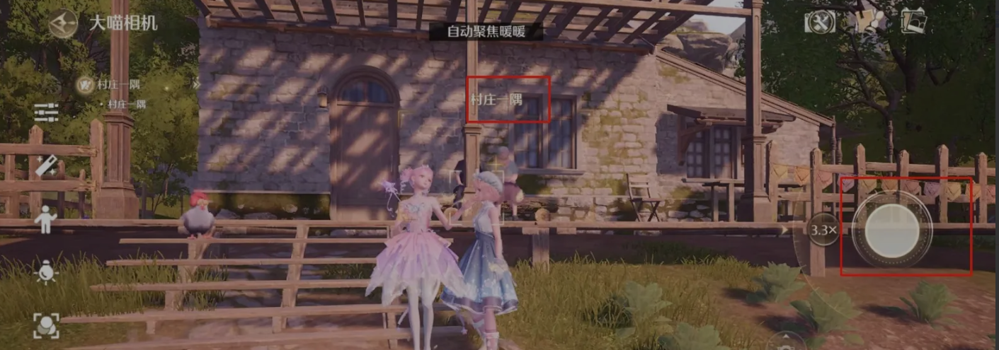 1、来到小石树田村的房子前,进入拍照页面,待照片上显示村庄一隅后,点击【拍照图标】