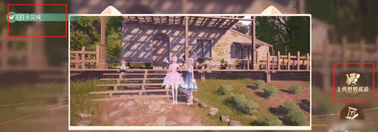 2、完成拍照后,点击【上传世界巡游】,即可打卡完成