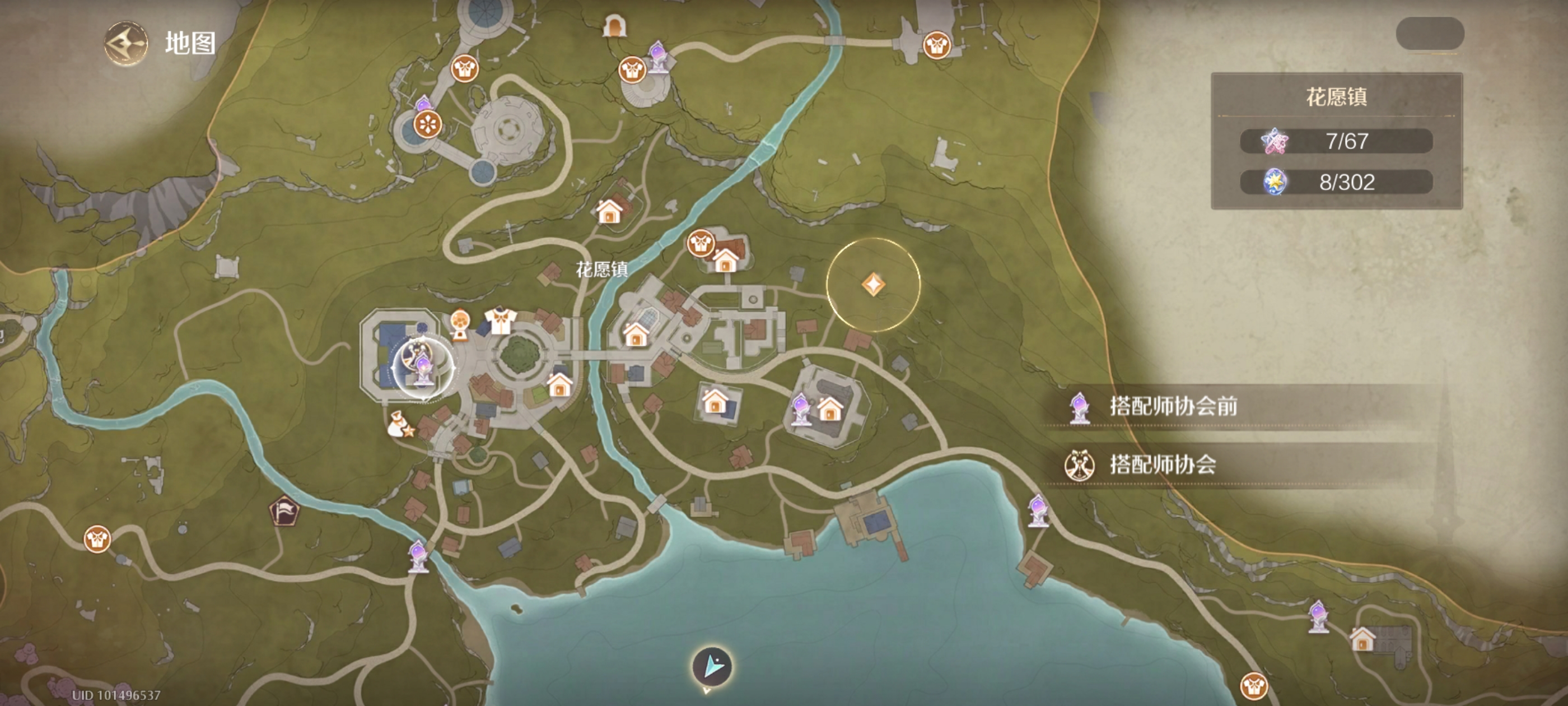 打开地图选择传送前往古花愿镇的传送点。