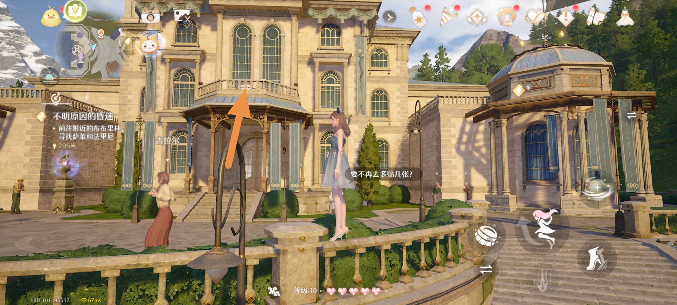 绕到房子后面,上去方法如图,需要借助伞,