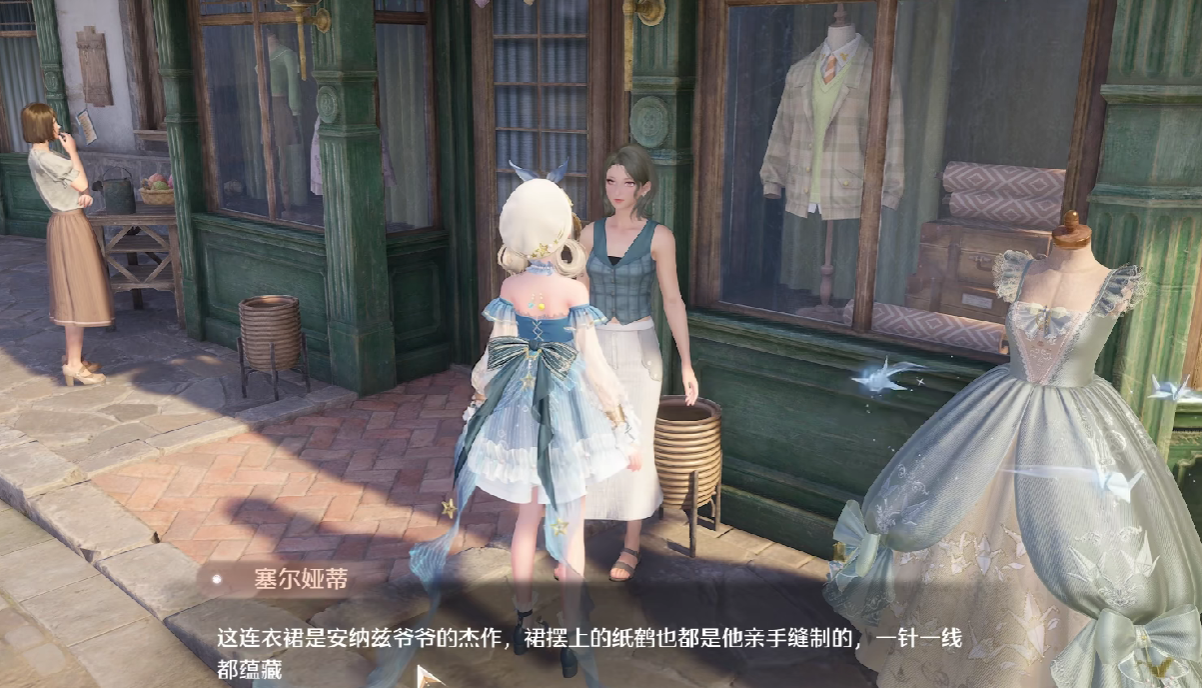 该任务的接取地点位于花园镇,玩家需要找到马尔克斯服装店,随后在服装店老板的引荐之下接取支线任务,在获取了任务之后,玩家就能够开启愿愿纷飞这个套装的获取流程了。