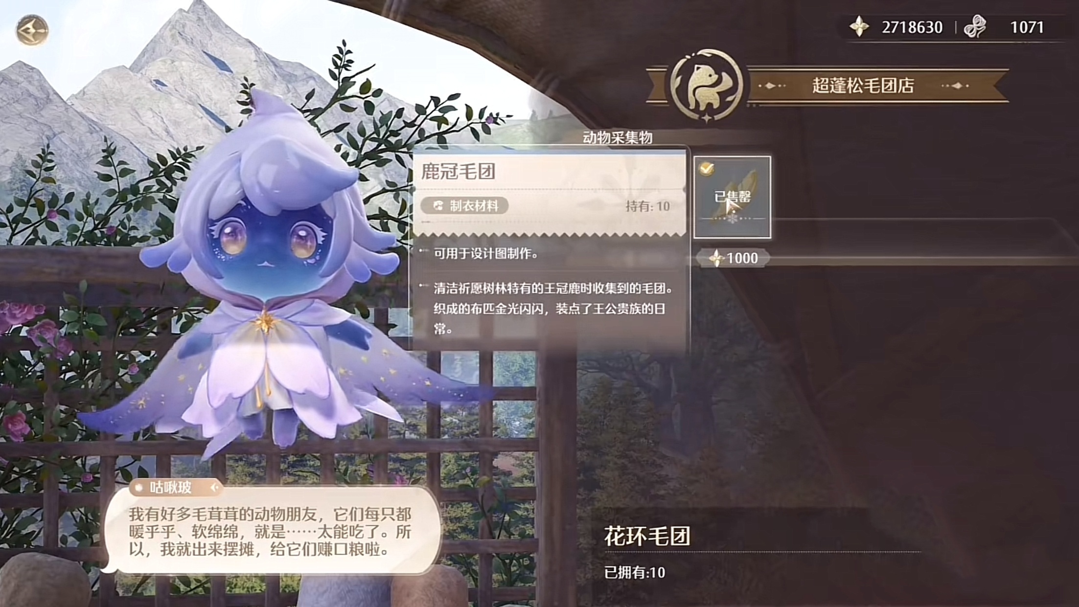 首先要介绍的是祈愿林的美妆工坊,这里堪称妆容爱好者的天堂。在美妆工坊的右前方,可以找到一个紫色漂浮的小精灵NPC——卡卡力达。别看他个子小,摊位上的东西可一点都不简单。他提供的11款三星美妆单品,包括甜美系的底妆、眉毛和睫毛,都是可以轻松搭配任何风格套装的“百搭神器”。而在卡卡力达旁边,还有一位专门售卖采集材料的NPC咕啾玻。他的摊位是服装制作玩家的救星,特别是当你缺乏一些关键材料时,比如花环毛团或者鹿冠毛团。与其满地图跑着寻找这些资源,不如直接来咕啾玻这里采购,省时省力又高效。