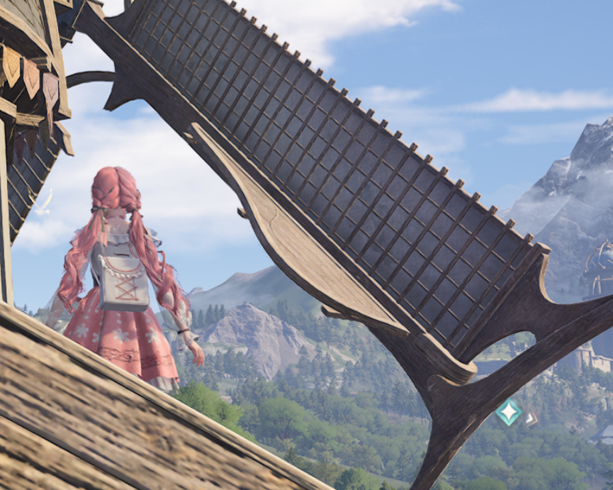 传送至捕虫小屋传送点,落地后记得立刻切换捕虫套装,装备到位才能够抓到奇想星。接着向屋顶移动,这里有一台风车在等你。站上风车的扇叶,乘着旋转的力量,一跃而上,成功登顶后立刻捕捉屋顶上的昆虫奇想星。