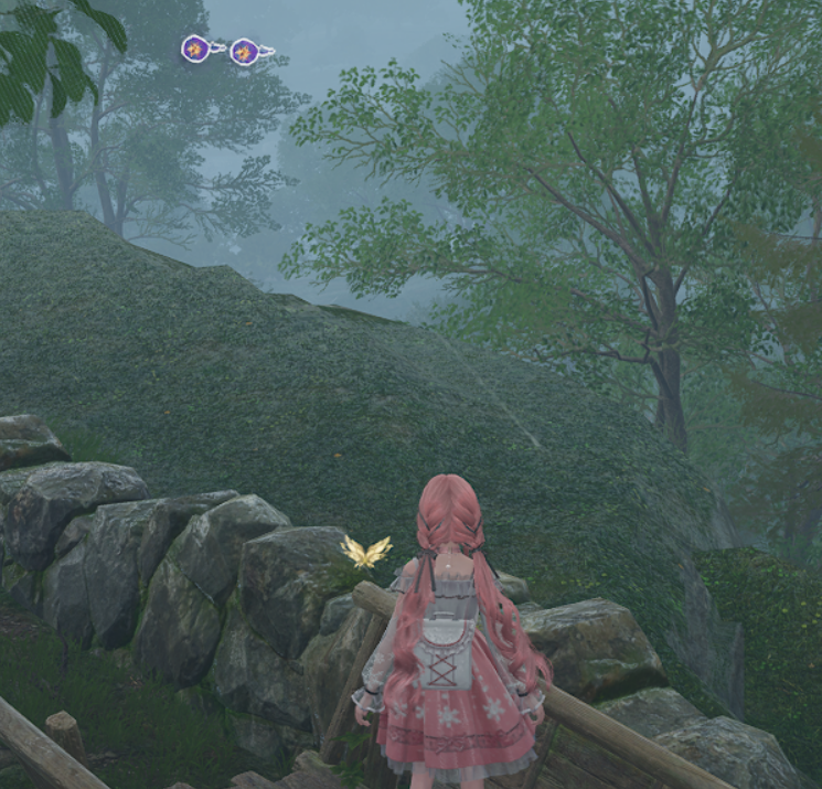 完成这些后,转向东方,沿着山崖边前进,注意脚下!这里空中还藏着两颗露珠,得好好调整角度漂浮攻击才能拿到。从山崖收集露珠后,回头转向西北方向的小凉亭,跳到凉亭的顶端,向南看,会发现两颗露珠挂在半空,攻击后轻松收入囊中。然后继续向西北的山坡前进,这里再看向东方,可以找到两颗露珠。