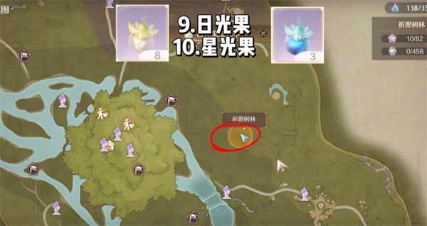 第九个日光果和第十个星光果,在小狐狸的西南方向有一棵时光树,白天拾取就是日光果
