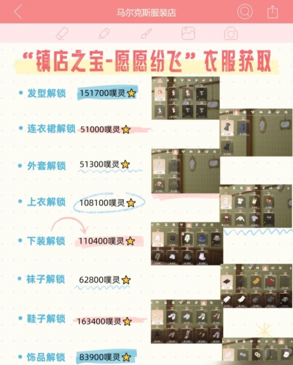 服装店中正在售卖的商品主要包含了服装、发型、袜子、鞋子、饰品等5个大类别,其中服装这个类别又分为外套、上衣和下衣这三个小类别,想要把所有的类别都买下来,我们的荷包就需要大出血一次了,小编算了一下,想要把镇店之宝买到手你需要准备140万左右的噗灵,把所有的服装全部给搬空后在花费58万噗灵就能把镇店之宝买到手了。