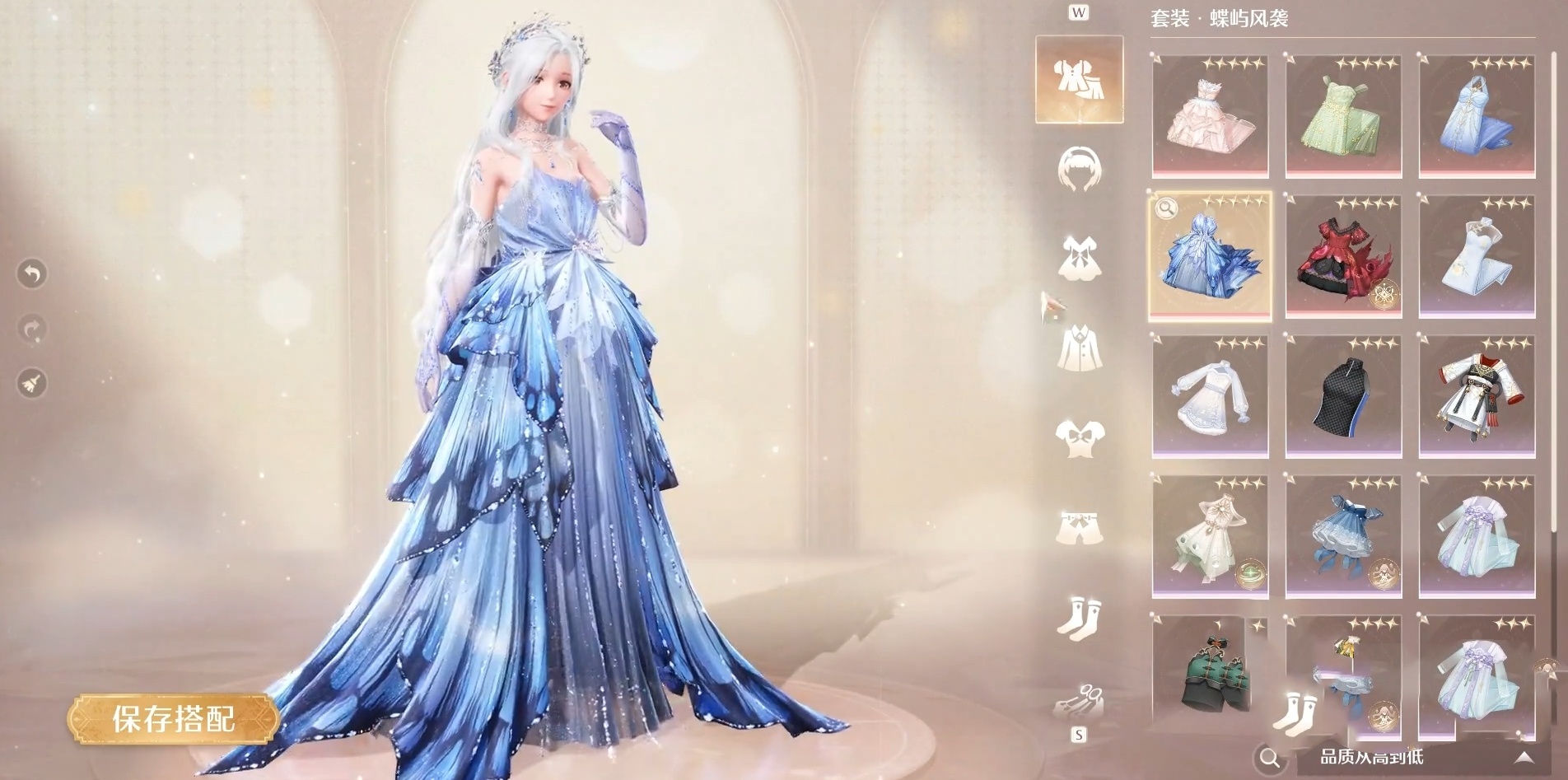 蝶屿风袭则是另一种风格的代表,这套蓝白相间的礼服宛如一只翩翩起舞的蝴蝶,在优雅中透着一丝灵动。精致的裙摆线条加上流光特效,动静之间仿佛能感受到海风的轻抚。作为一款充值限定套装,它的获取需要一定投入,但高贵典雅的设计,让它成为许多玩家的“梦想之衣”。穿上它,不管是舞台还是故事场景,都能瞬间成为焦点。