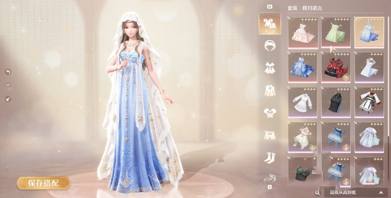 如果说前两套还偏向于优雅梦幻,那么辉月诺言则多了一份异域风情。这款套装以月亮与星辰为主题,温柔的色调中带着些许神秘感,整体设计充满了异国风的浪漫氛围。它的获取方式是通过惊喜滚滚机抽取,并且属于高难度抽取档次——能拿到这套衣服的玩家,绝对是欧气满满。而它的独特风格也让人分外珍惜,每一处细节设计都非常耐看,特别适合喜欢异域幻想风格的玩家收藏。