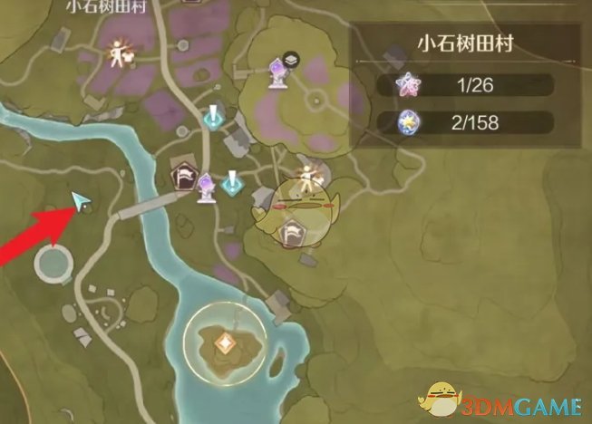 1、首先我们打开地图,传送到小石树田村这个位置;