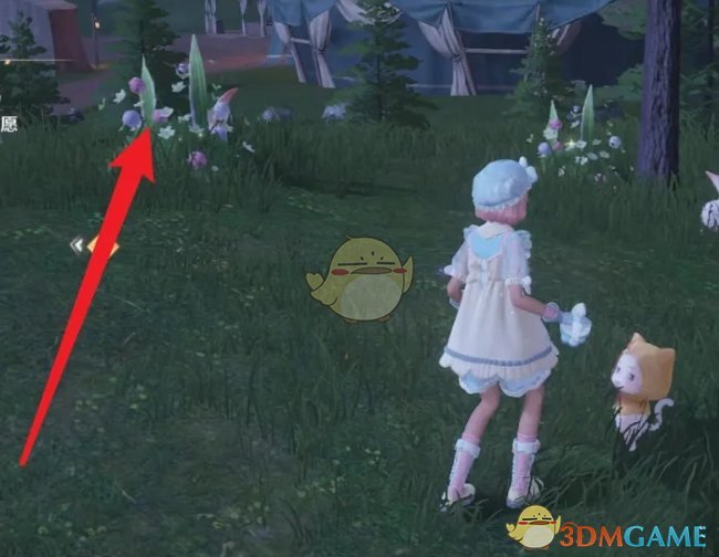 2、前往织裙田里采集,可以看到左侧箭头指引的兔兔妆粉;