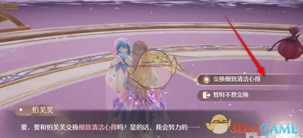 3、在剧情对话中,选择交换细致清洁心得选项;