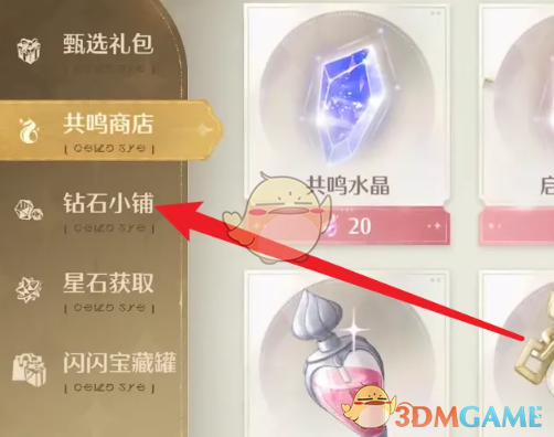 2、进入到商城页面,在左侧的导航栏中点击钻石小铺进入。