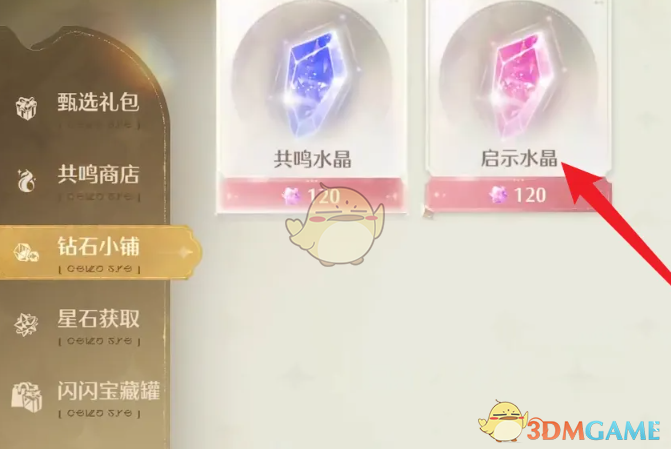 3、在钻石小铺页面即可看到共鸣水晶以及启示水晶,需使用120钻石兑换一枚启示水晶。