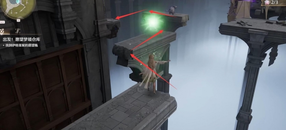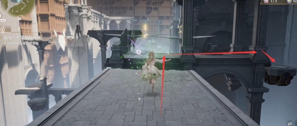 2、漂浮加速去对面的平台,顺着右边的纸鹤一直往上走;