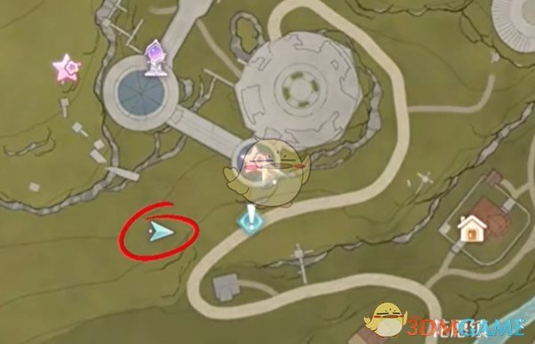 1、首先我们打开地图,传送到花愿镇的半山腰位置;