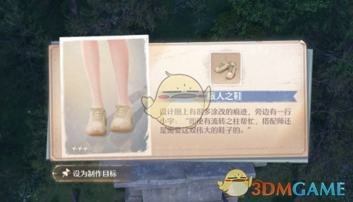 5、点开开启宝箱即可获得旅人之鞋设计图,有很多涂改的痕迹,边上还有一行小字提示。