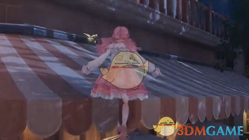 2、来打指定位置,需要借助遮阳棚跳跃,再使用漂浮技能跳跃到旗帜上。